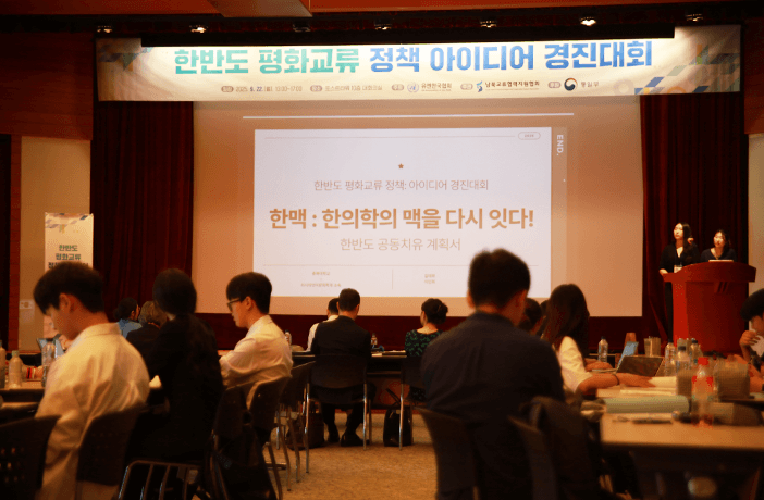 지난 9월 22일(월), 협회가 주관하고 통일부가 후원, 유엔한국협회가 주최한 '한반도 평화교류 정책 아이디어 경진대회'본선이 개최되었습니다. 지난 5월부터 4개월간의 대장정을 지나온 이번 경진대회는 19개 팀, 29명의 청년이 참여한 예선 결과, 서류 심사를 통해 본선 진출 팀으로 10팀을 선정했고, 분야별 온라인 멘토링 진행을 진행했습니다. 본선 발표 결과, '북한 디지털 플랫폼 기반 원조체계 구축'을 주제로 발표한 보리건빵팀(이화여대 서선우, 양지원, 정백초)이 대상(통일부장관상)을 수상했습니다. 대상 수상작이 궁금하시다면 '잘파의 톡톡클럽' 코너를 확인해주세요~!