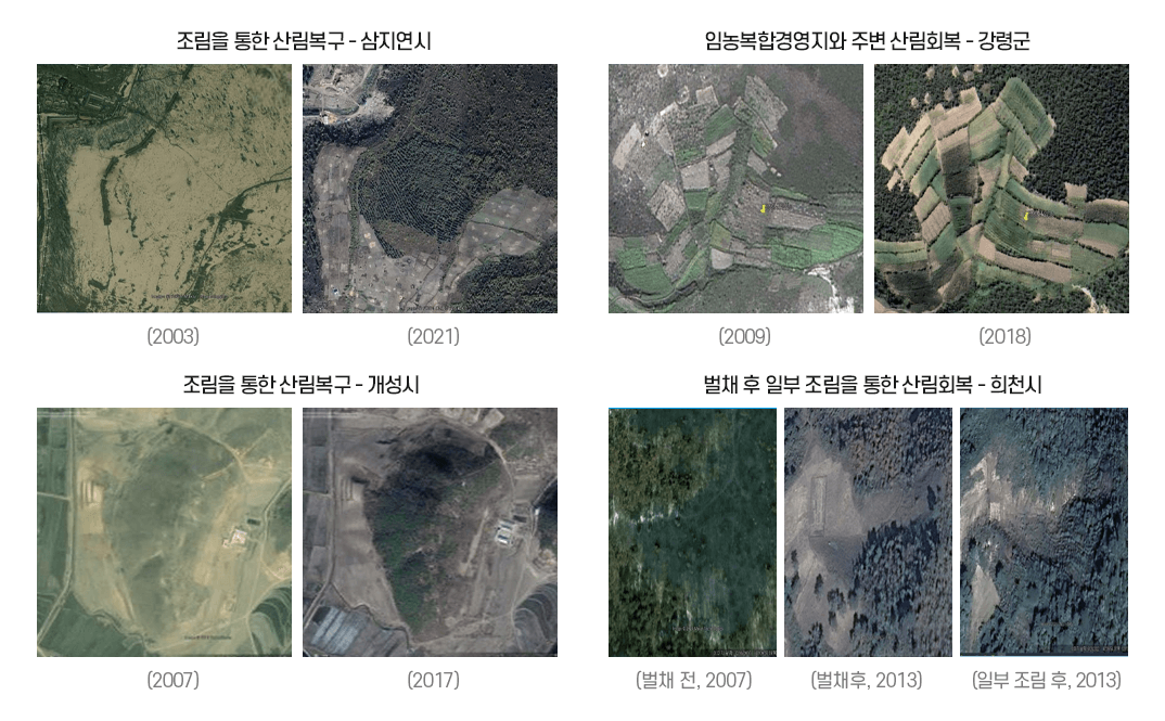 산림복구전투 이후 산림 복구 및 회복 유형(구글 위성 자료 활용)